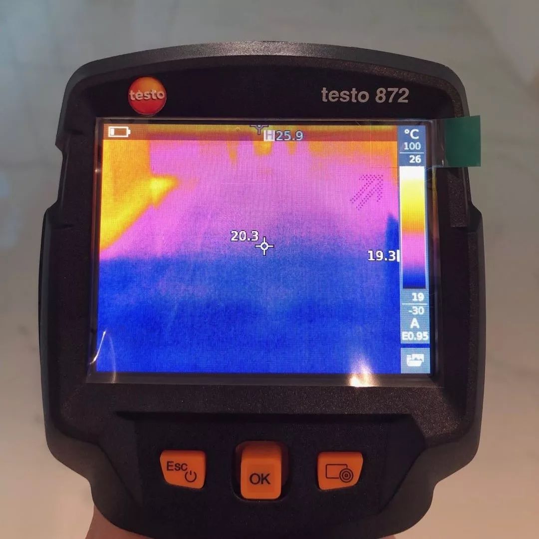 图为热成像仪观测到的地板辐射系统温度与毛细管形地表辐射系统构造