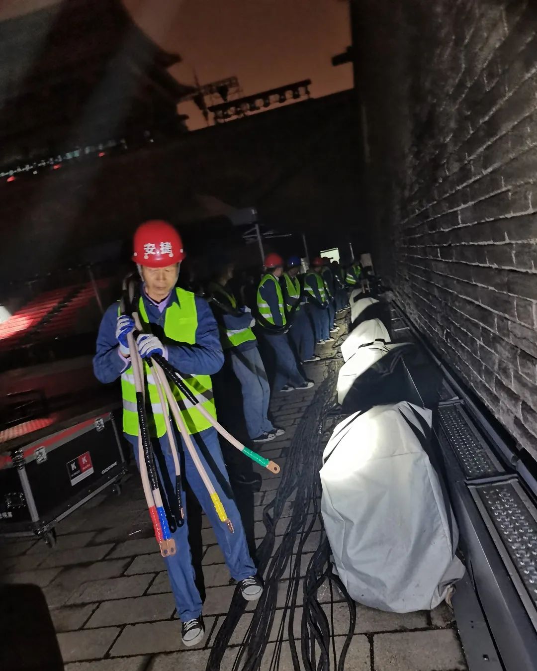 接到本次保电任务,BB贝博艾弗森物联提前周密部署,统筹安排人员,制定完善的保电方案,40余位工作人员连夜铺设电缆,奋战3天,现场调试设备,轮班值守。现场由24人组成的BB贝博艾弗森物联保电人员分为四小队及后勤保障组,细化分工,各小组人员全程坚守岗位,加强关键环节和点位的监控,随时应对活动现场供电突发情况,确保了此次丝绸之路国际电影节的顺利开幕。
