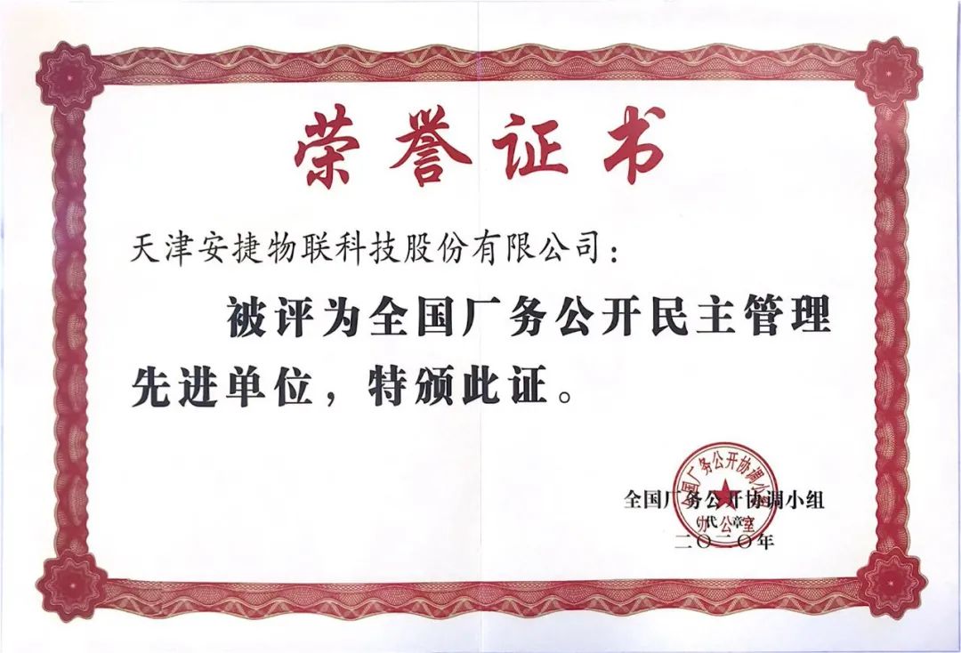 近日,天津BB贝博艾弗森物联科技股份有限公司被全国厂务公开协调小组授予“全国厂务公开民主管理先进单位”称号。